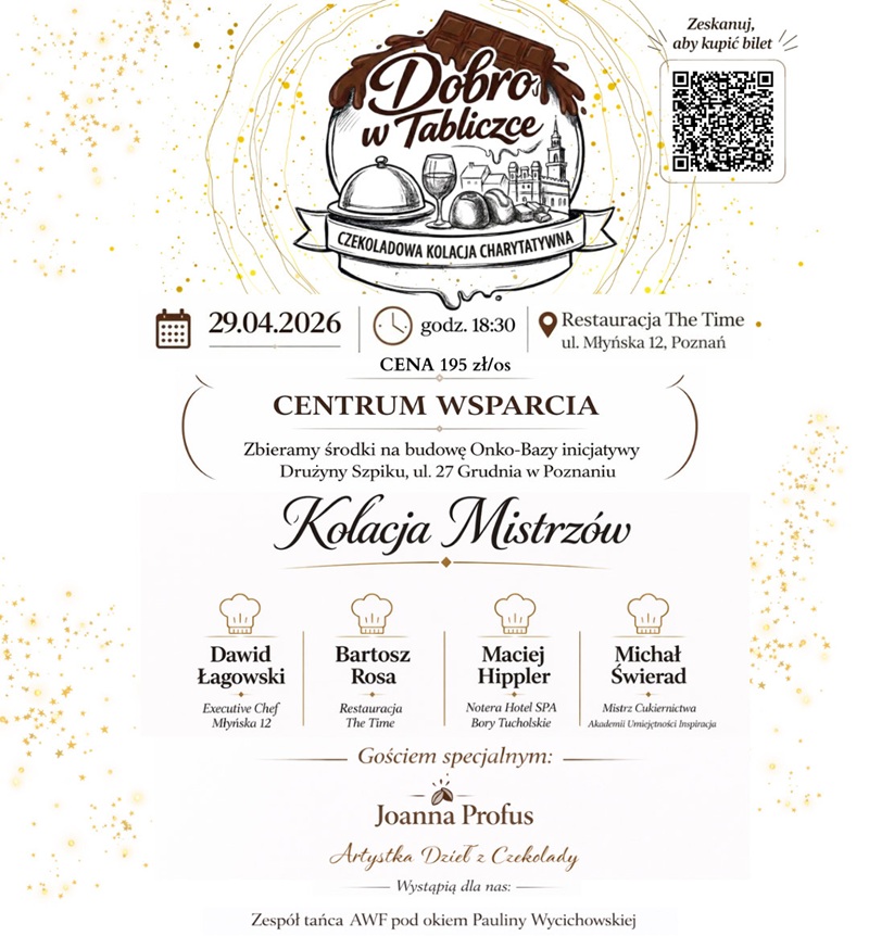 Menu zaprezentuje czekoladę w nieoczywistych odsłonach nie tylko jako deser, ale także jako inspirację do budowania zaskakujących połączeń, aromatów i struktur. Wydarzenie ma charakter charytatywny, celem jest wsparcie Drużyny Szpiku oraz budowy Centrum Wsparcia Rodzin Onkologicznych w Poznaniu, miejsca tworzonego z myślą o rodzinach potrzebujących pomocy, obecności i wsparcia w czasie choroby nowotworowej.